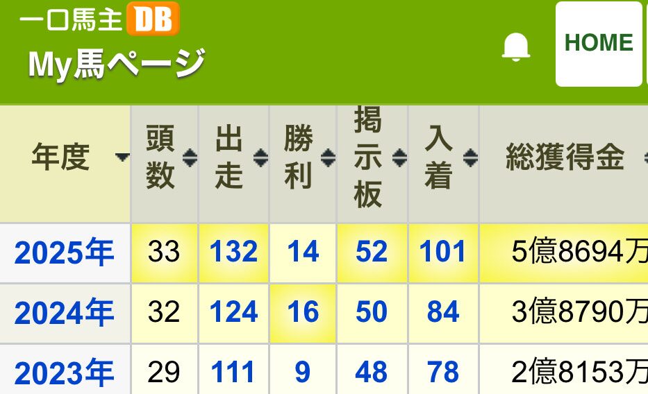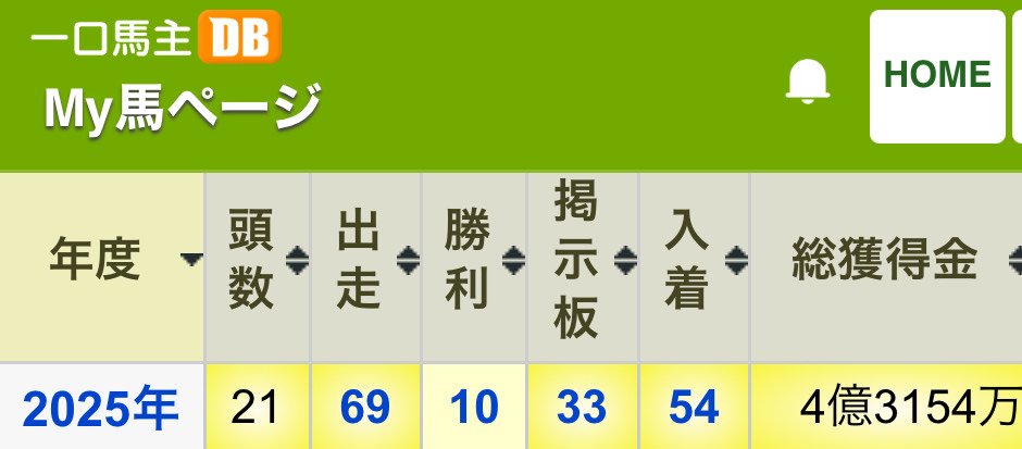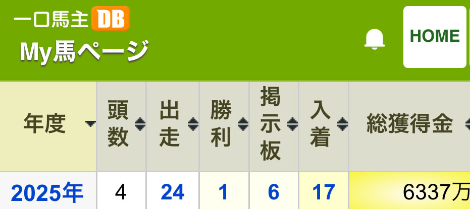 早いもので2025年も終わりが近づいてきたので、毎年恒例の出資馬成績を振り返ります。