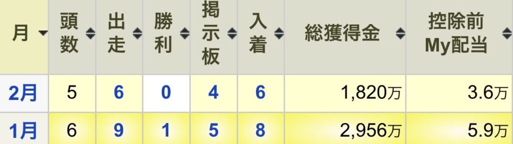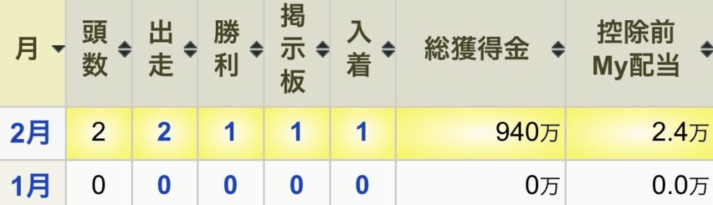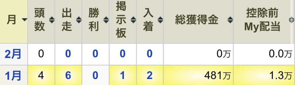 1・2月の出資馬成績