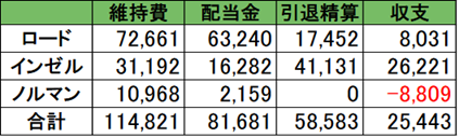 トータルの数字だけ見ると収支はプラスなのですが、コンテソレーラとロードリレーションの引退精算分が結構大きく純粋な配当金だけではマイナスの結果となりました。